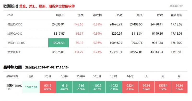 意大利富时MIB指数1月2日(周五)开盘上涨38.96点,涨幅0.09%,报44983.50点;