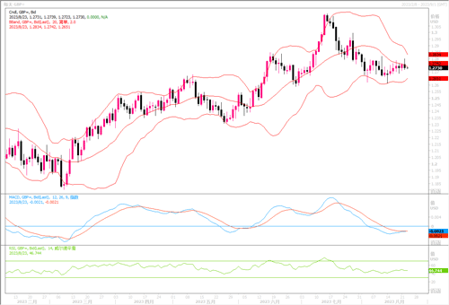 周二(8月22日),英镑兑美元先扬后抑,最终跌0.19%,收盘在1.2735,盘中最高一度触碰1.2800。周二公布的一项行业调查结果显示,截至8月的三个月中,英国制造业产出创下了近三年来的最大降幅。英国工业联盟(CBI)公布,截至8月的三个月产出净差值从7月份的正3降至负19,为2020年9月以来的最低值。CBI的8月新订单差值也从负9降至负15。该调查的价格预期指标跌至2021年2月以来的最低点--这增加了制造商通胀放缓的迹象。尽管如此,由于英国薪资增长速度快于通胀,而7月份通胀下降速度又低于预期,市场普遍预期英国央行在对抗通胀方面可能还有更多工作要做。不少机构分析认为英国央行在9月份还会加息一次。因此,近期相比其他非美货币而言,英镑似乎显示出较强的抗跌性。8月份里,英镑/美元两度测试低点2.1617附近水位都受到支撑而产生反弹,虽然反弹力度不强,但似乎有在上述水平筑底的迹象。但在没有重要数据和大事件的冲击下,短期内镑美预料仍只能徘徊于窄幅之中,区间主要限制在1.26-1.2850之间。