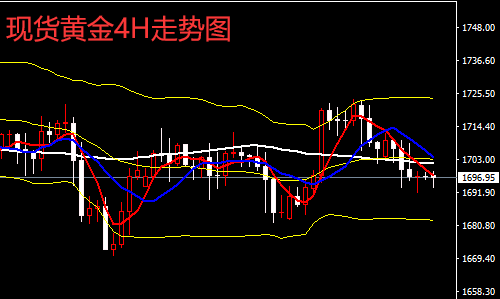 黄金技术面分析:现货黄金从日线图上来看,昨日高点在1712一线,低点在1692一线,日线收取一根小阴线,日线布林带三轨逐渐缩口,黄金价格目前运行在布林带中轨附近,均线收死叉下行,上方重点关注1720-1724一线阻力,下方重点关注1682-1680一线支撑;现货黄金从四小时图上来看,布林带三轨逐渐走平,黄金价格运行在布林带中轨和下轨之间,均线收死叉下扬,上方短期关注布林带中轨1703一线阻力,下方短期关注1687一线支撑。综合来看,今日短线操作思路上陈文龙个人建议以反弹高空为主,回调做多为辅,黄金上方建议反弹到1703-1705附近分批布局空单,下方回调到1685-1687附近开始分批布局多单即可。目前仓位上有单的朋友,由于笔者陈文龙不知道你们套单的点位以及仓位的详细情况,不好给出相应的解套策略,需要解套的可单线本人(官微:cw7246)