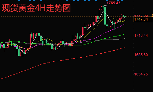 黄金技术面分析:黄金昨日行情依旧是来回震荡,不过整体在1726之上,从前期的弱势逐步转强势,所谓风水轮流转,强弱交替就在一瞬间,在美盘连续两个下跌无力之后,黄金上涨一波至1747附近,那么在今天,就确定了黄金延续会强势,主力看涨。严格来讲,其实这个行情一直没有改变上涨趋势,即使是暴跌至1726之后,空头就稍显疲惫,特别是在H4周期中,以一根长下引线的阴线收涨就确定了黄金下跌空间或难以延续,只不过周二反转感觉有点太快,日线周期中的大阴包阳,反转收阳之后,也就是高位震荡的表现。对于后期行情而言,黄金没有破位新高,就是多头趋势下的高位震荡。