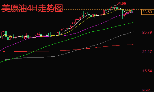 原油技术面分析:原油上周延续收阳,周K线底部四连阳强势反弹。打底快速回升,上周最高触及34.65高点处承压略有回撤。尾盘时段稍微回撤空间大一点。上涨一天,回撤一天,上周五日K线收成阴十字K线。从日图趋势来看,拉动均线指标向上当中,趋势看涨不变,上周五回撤接近10日线启稳,多头生命线拉动向上。自底部回升以来,走出一波强力单边上涨式的反弹。日图已经走强,目前的回踩只是局部整理修正,日线依旧看涨。本周依托10日线做临界点看涨。