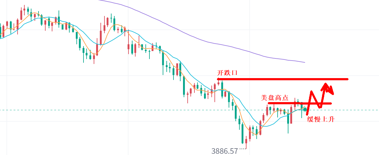 3,按照现在的走势,继续先看反抽,那么介入点在3955-56一线,欧盘继续看破高延续。