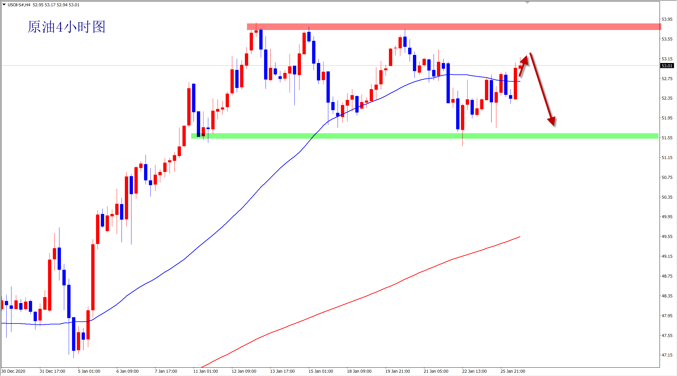 原油53上空,止损53.8,目标52.3-51.8;