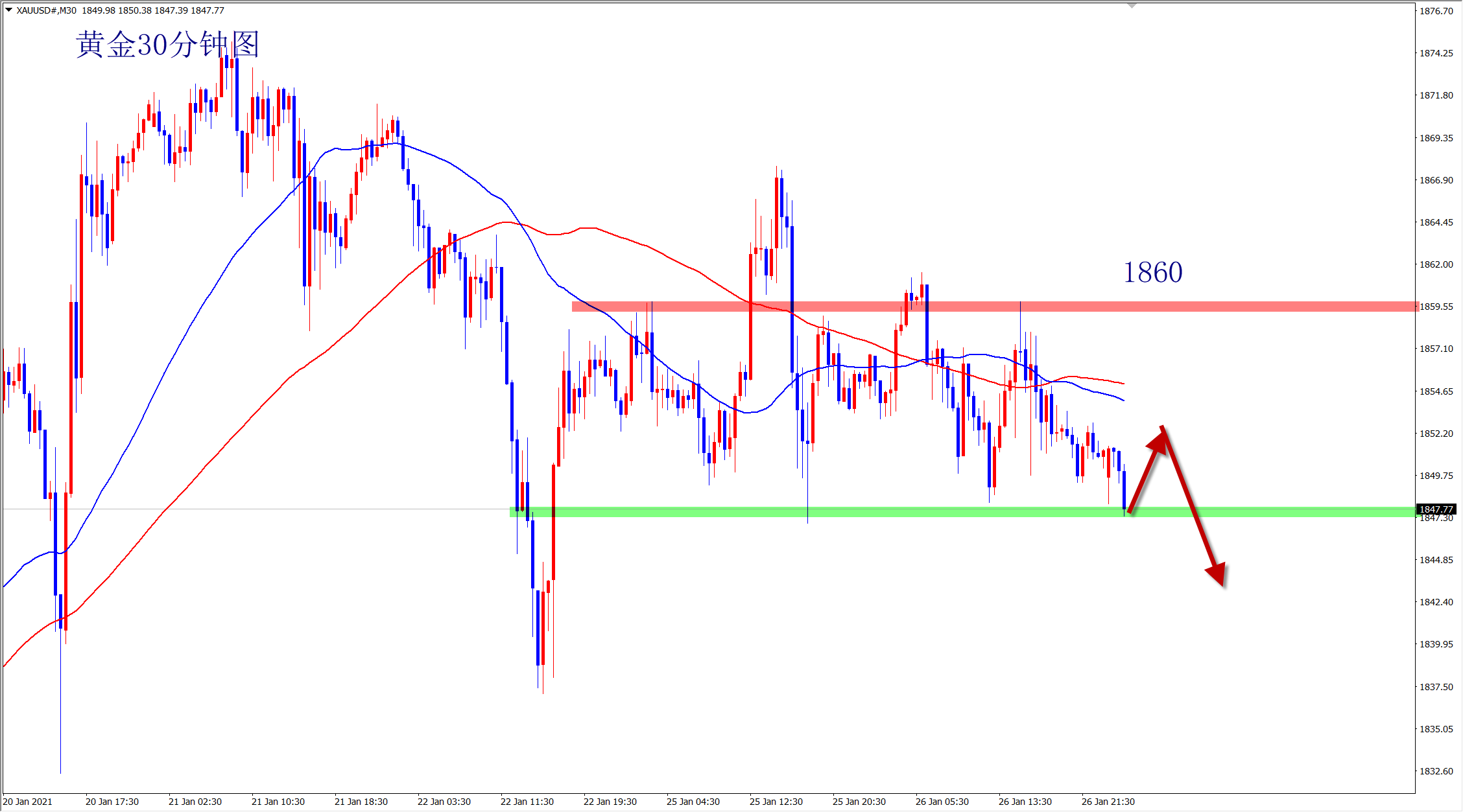黄金1850我们已经再次进场干空了,欧盘持空看跌,下方关注1840支撑,破位看1830!