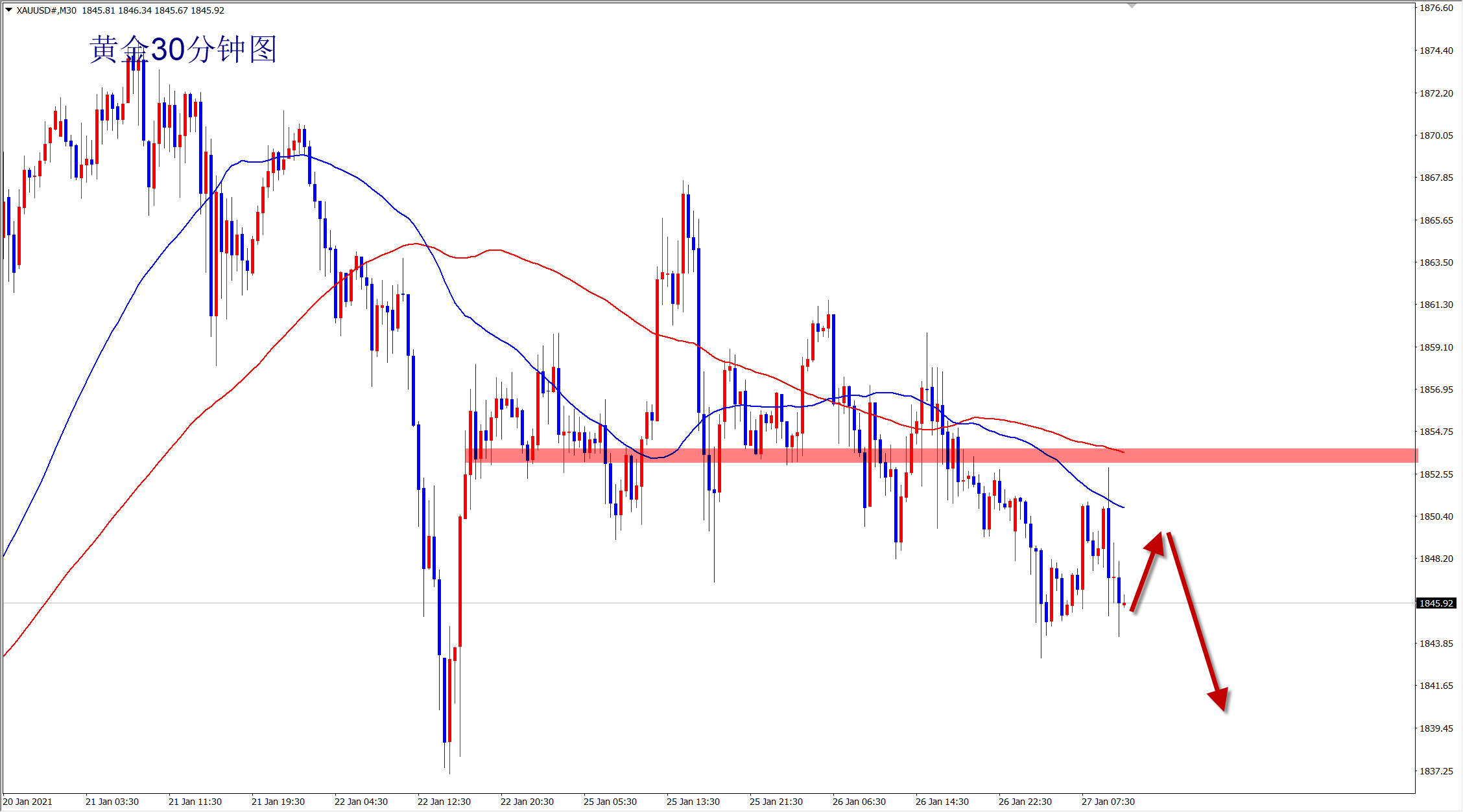 黄金1845空,止损1852,目标1830-1825;