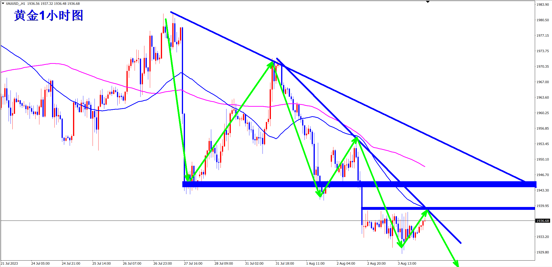 今日美盘大非农数据公布,预计又是一场腥风血雨!当前的黄金还是空头跌势,操作上继续顺势空为主,早盘依托1944的压力继续干空!