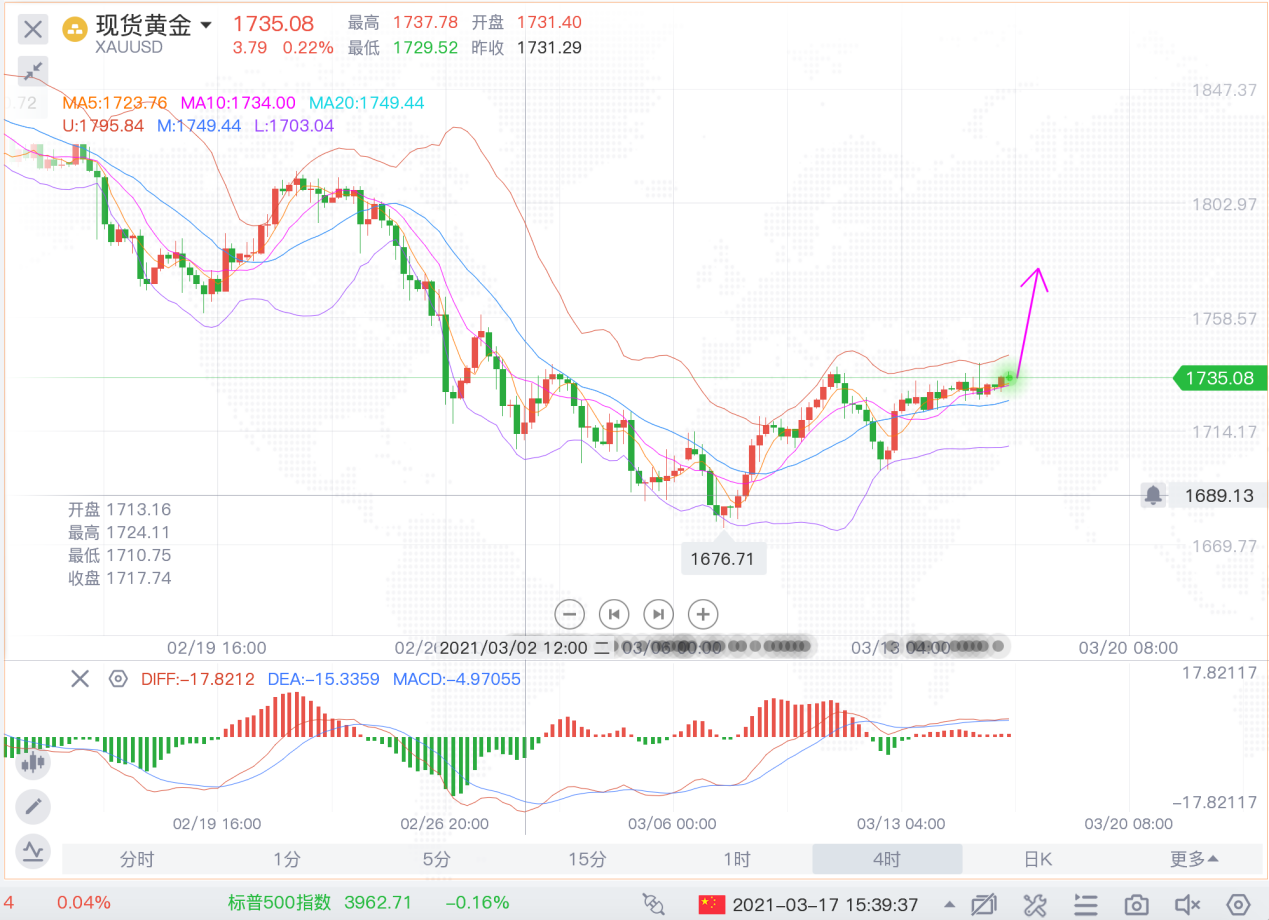 本周,市场进入到了夏令时,美盘时间从原来21:30提前到了20:30,这是一个不错的时间节点,美盘行情就不会太延后,也便于投资者在晚间的交易窗口,只是这刚进入到夏令时,黄金的行情波动还不大,一直围绕着1735附近徘徊。