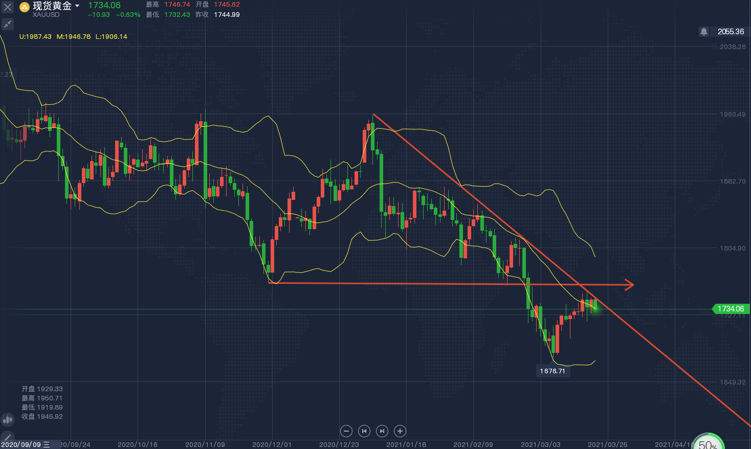 黄金:回落1725附近做多,止损1717,目标1750。