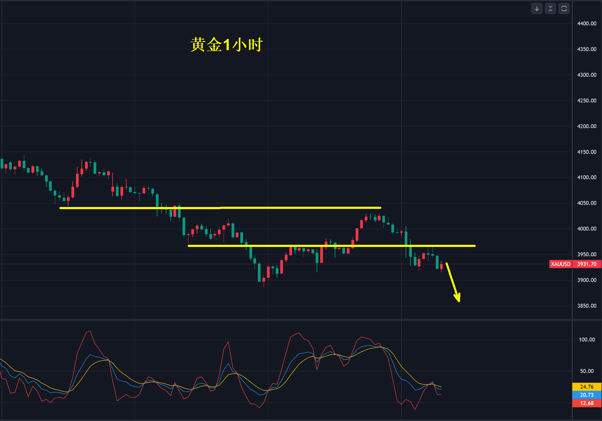 1小时黄金形成双顶,4385美元成为短期顶部,下调行情的判断不是看高点,而是最后一次拉升前支撑位置的破位,4180美元失守意味着短期方向已经进入震荡,并非强势单边。