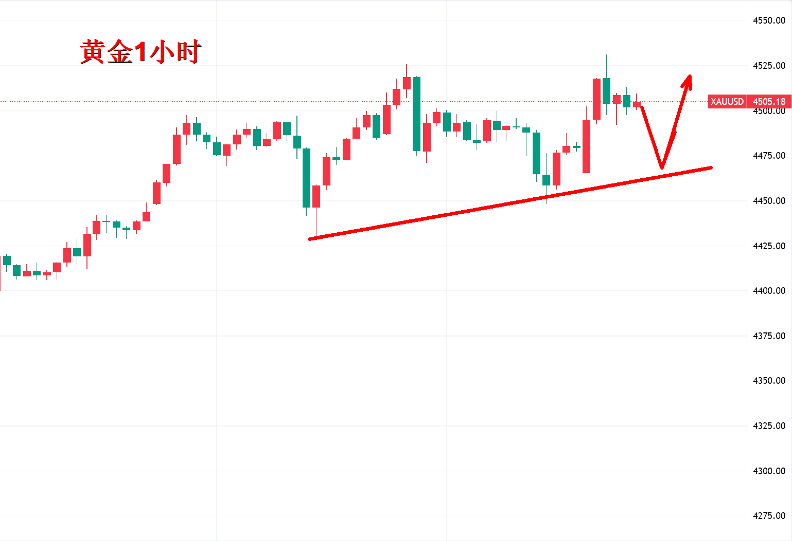今天黄金压力位置在4520-25美元的位置,而回落后的支撑点4485-4480美元,防守区域重点观察4450美元。欧盘过了前高点美盘前回踩做多,以及欧盘