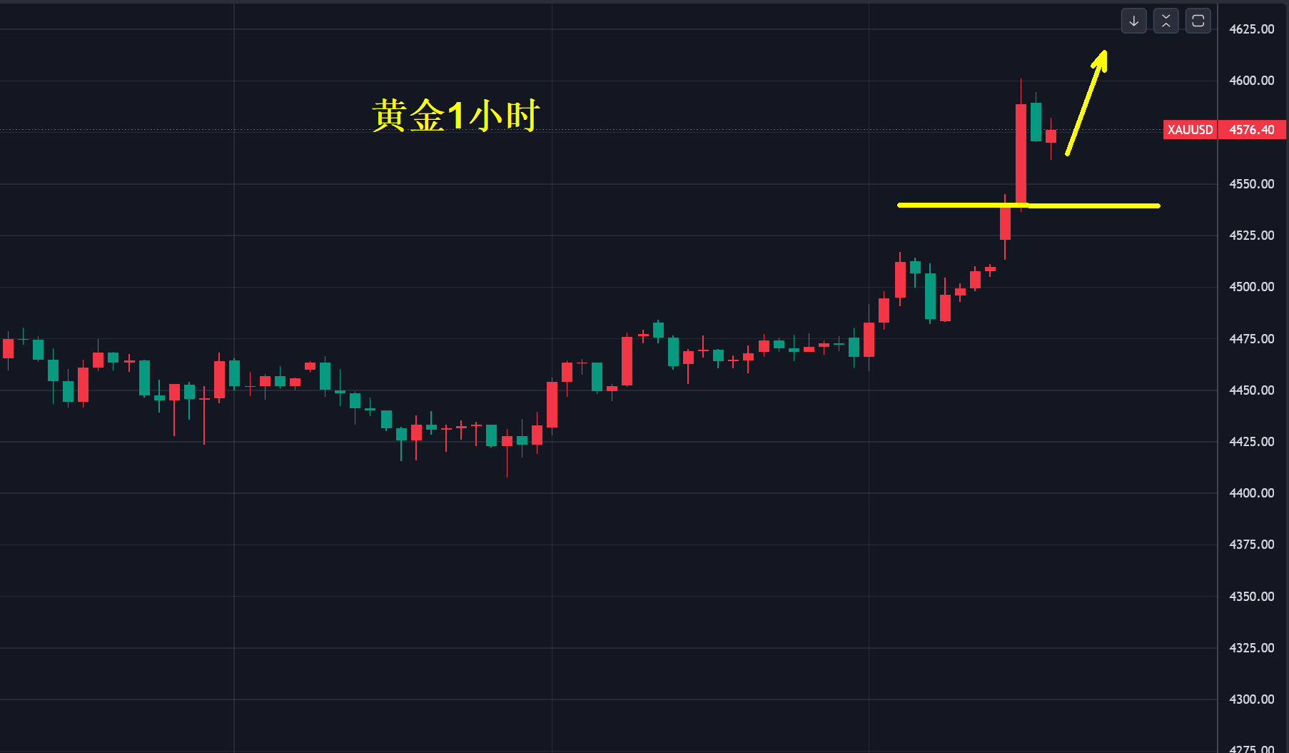 早间金价再次跳空高开,延续上周一跳空的节奏今天冲击4600美元,没有回补更没有修正,一路北上屡创新高,短短几个小时就涨了100多美金,也算是刷新认知了。