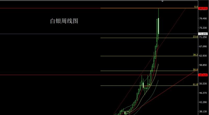 白银市场上周开盘在79.703的位置后行情先拉升,给出历史新高84.014的位置后行情获利了结快速回落,周线最低给到了69.951的位置后整理,周线最终收线在了72.646的位置后,周线以一根上影线长于下影线的大阴线收线,而这样的形态收尾后,本周有继续回落压力,点位上,下方37.8的多和38.8的50.75的多和52.7的多减仓后止损跟进在68,今日75.5空止损75.8下方目标看74.5和74和73.5和73和72.6和72.