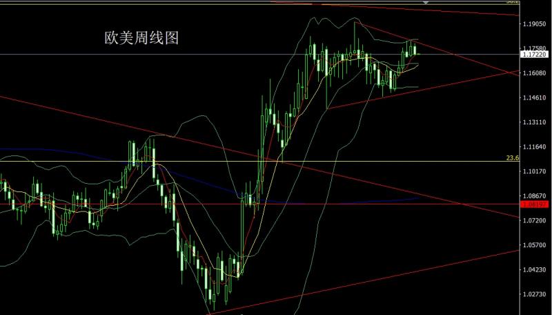欧美市场上周开盘在1.17709的位置后行情小幅拉升给出1.17887的位置后行情强势震荡回落,周线最低给到了1.17121的位置后整理,周线最终收线在了1.17199的位置后,周线以一根上影线稍长的中阴线收线,而这样的的形态收尾后,本周市场有回落压力,点位上,今日1.17450空止损1.17600,下方目标看1.17150和1.17000和1.16800-1.16600离场准备多。