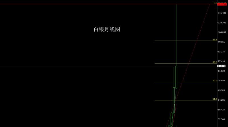 白银市场1月初行情开盘在71.182的位置后行情小幅回踩给出70.873的位置后行情强势拉升,到上周四月线给出历史新高121.794的历史新高目标后市场出现获利了结强势回落,到周五最低给到了73.284的位置后尾盘拉升,月线最终收线在了84.619的位置后,月线以一根上影线极长的类倒锤头形态收线,而这样的形态收尾后,2月的行情有回落需求,点位上,本周95空止损95.5,目标看86和80,跌破看78.7和76和75.跌破看73和70离场反手多。