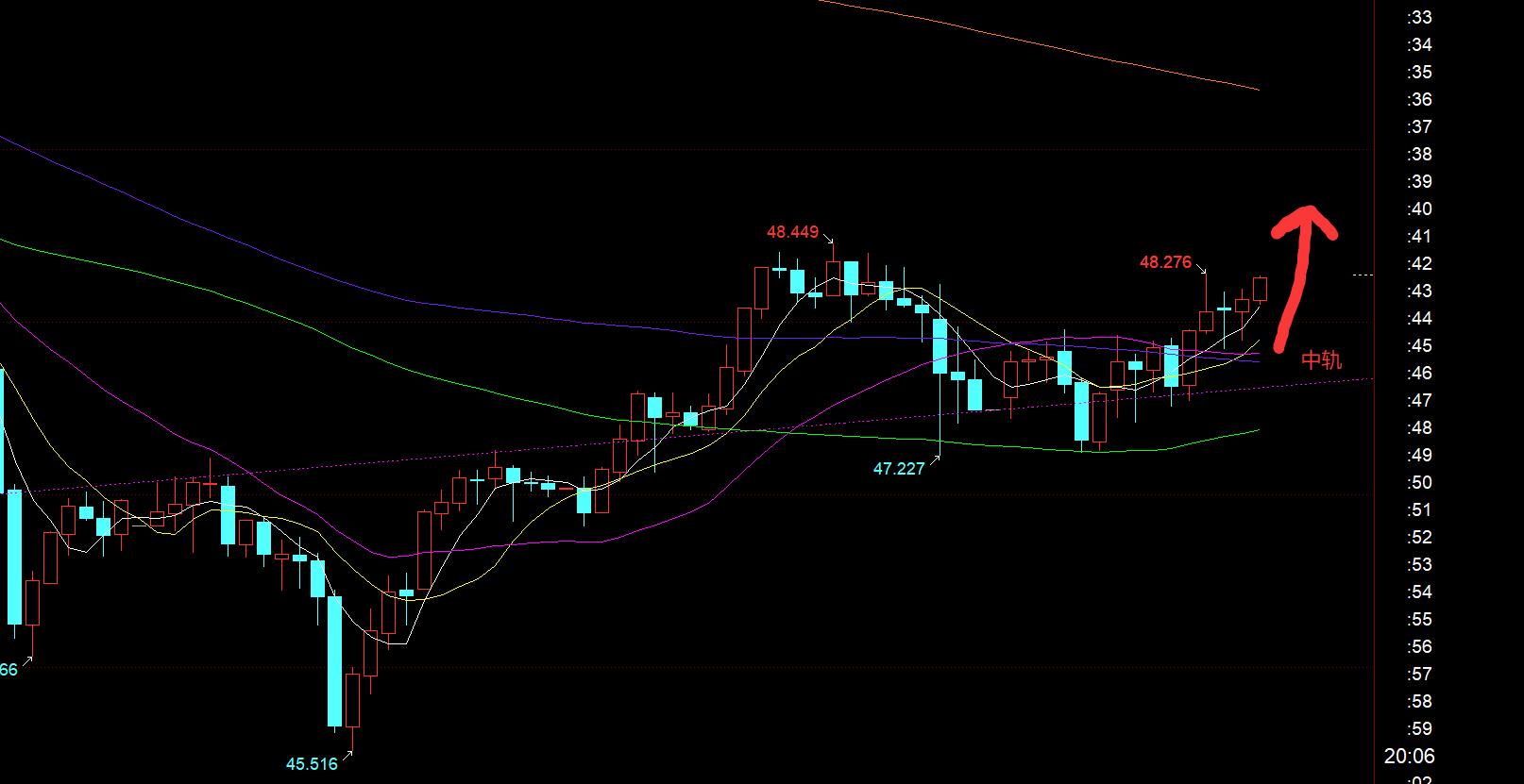 第二,白银方面:它的走势比黄金相对稳健,不至于大起大落,47.4一线支撑依旧存在;