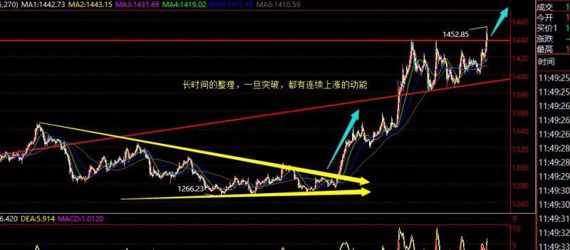 本周强调多头趋势下,周线级别连续三周维持震荡修正,时间极限到位,本周将有突破,本周三下调1400关口,以双底支撑1400逢低看涨,一路给出1404多、1407-08多、1413-14多、1420多、1418-19多、1424-25多,今日开盘最高已经冲击1453一线,不管前期哪里做多,相对于现在都是低位,利润可想而知,而周三也提示可以轻仓留底仓多单中线持有,黄金多头一旦爆发,势不可挡,不要去猜顶,只寻找支撑做多就行,价格既然突破了1438-1439前期双顶阻力,而今日亚盘冲高后回落刚好试探确认此位置得到一定支撑,虽然现在不发力,等待的是欧盘,一旦继续大阳拔起冲破1453高点,美盘势必有一个全新的高度;目前关注1438支撑即可,守住不破维持强势看涨,若跌破,那么暂时震荡,下移进多点继续干多,干多,还是干多,尽量规避空单,短线幅度大,尽管空单位置好也能抓大波段,但顺势往往容易更加爆发,就像隔夜1430阻力突破后,迎来200多点的拉升;