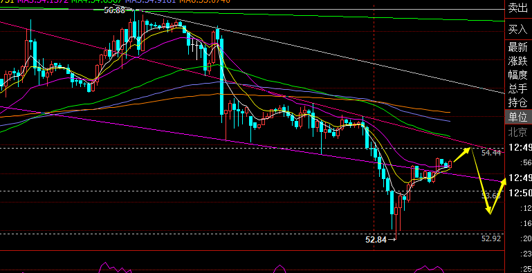 油价昨日终于来了瀑布式的下跌,从55高点一路压制跌至52.9,半夜受到前期53以及分割618支撑52.9后,进行了一波反抽修正,目前回到54上方,不过4小时级别10均线54.4存在压力,也是昨晚破位之后反抽确认的平台阻力,上方还有54.6看趋势阻力,以此作为压力继续先看空,预计破位52.9底部希望不大,以区间54.6-52.9震荡为主,拉低之后企稳再去低多,先空后多运行;把握节奏,注意尽量靠近震荡两边去参与,中间多观望;