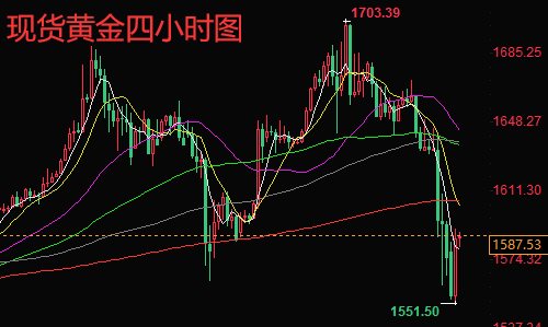黄金:周五(3月13日)亚市盘中,在隔夜美股暴跌全部坠入熊市后,今日亚洲市场掀起股市熔断潮:韩国KOSPI指数下跌8%,触发熔断。菲律宾股指跌10%,菲律宾交易所暂停股市交易。道琼斯指数期货触发熔断。印度尼西亚股指跌5%,触发熔断。在危机的氛围不断加重之际,现货黄金未能从中获得避险买盘,相反,金价持续下挫,日内一度逼近1550美元关口。