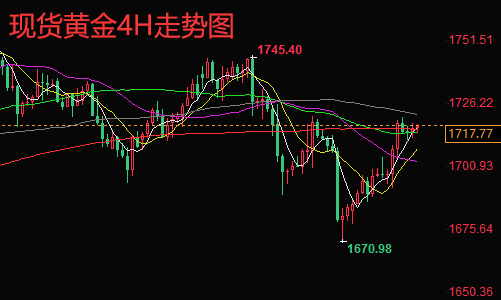 黄金技术分析:现货黄金从日线来看,金价自近期低位有所反弹,MACD绿色动能柱略微缩窄,KDJ随机指标转而走高,指示黄金反弹动能强化,接下来料继续展开上行。金价昨日多头再次崛起,成功修复上周五因非农带来巨大跌幅,目前已经回到了1720一线稍下位置,但MA20的反压能否突破仍需进一步关注,现阶段MACD指标回到了0轴附近,实际上并没有太过于明显的帮助,还需等待下一波趋势的延续,日内美联储决议前可先关注1700-1730区间。