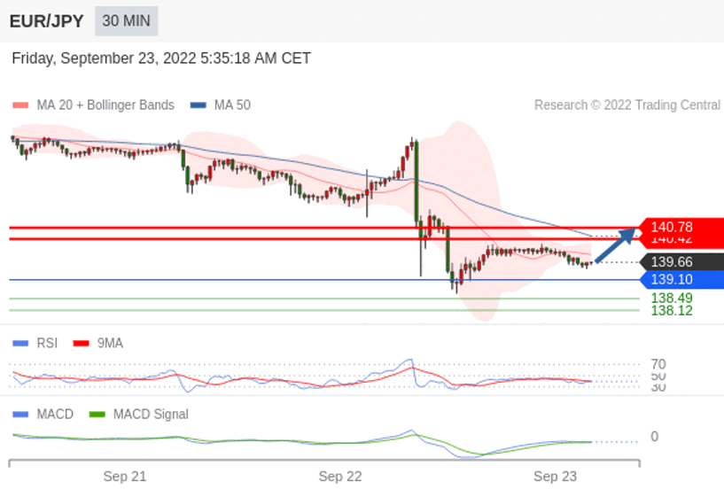欧元/日元 当日内: 有上涨的可能,目标价位定在 140.78 。