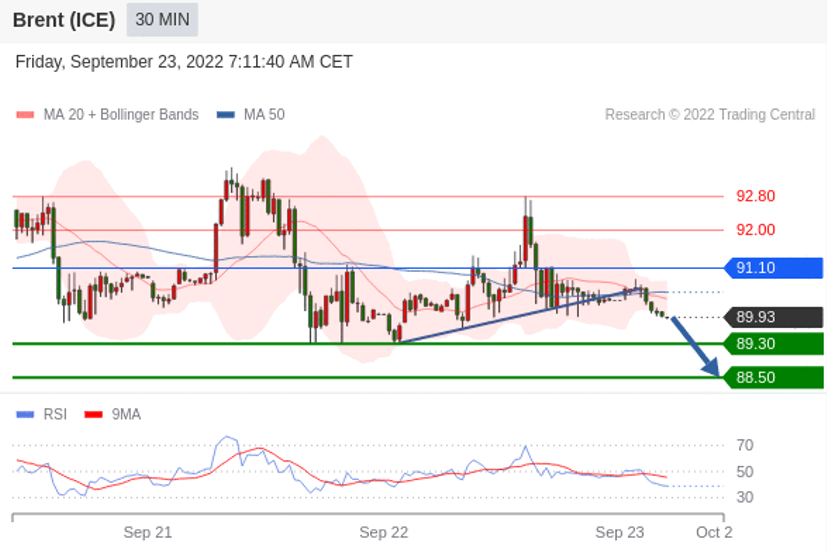 布伦特原油 (ICE)? (X2)? 当日内: 存在压力。