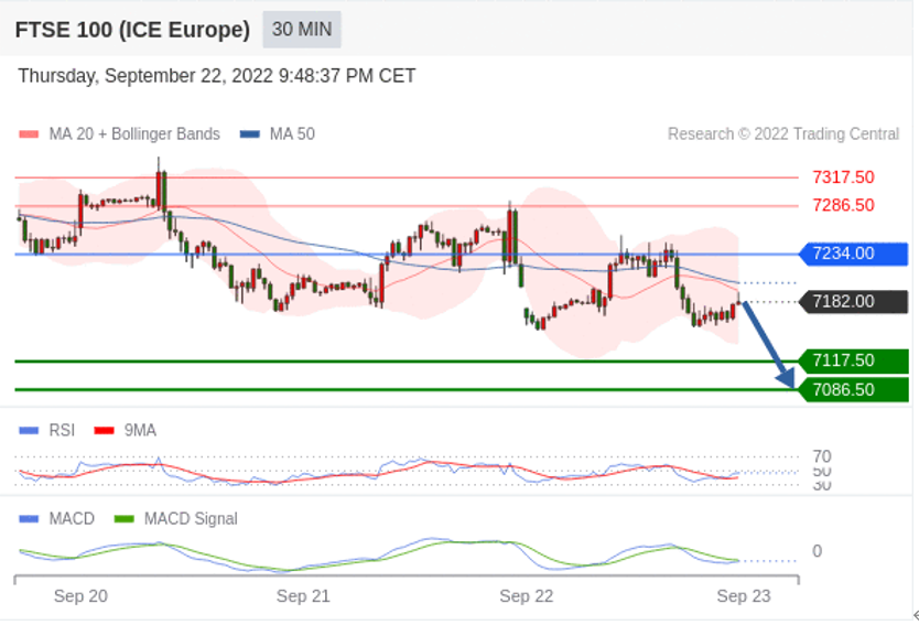 英国富时100指数期货 当日内: 看跌,在 7234.00 之下。