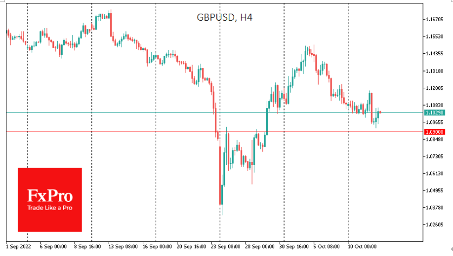 FxPro高级分析师Alex Kuptsikevich指出:英国央行(Bank of England)昨日扩大了对债券市场的紧急支持,将通胀挂钩债券纳入其购买名单,导致英镑兑美元盘中从1.10升至1.1180。但在晚上,州长贝利提醒说,紧急措施仍然是暂时的,这些延长的购买计划将按计划于10月14日结束。这些声明引发了债券市场的小混乱,并使英镑从周三上午的高点跌至1.0923的低点,跌幅超过2.3%。这种两极政策令人困惑,尽管它有一定的道理。