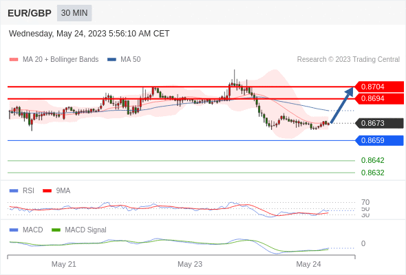 欧元/英镑 当日内: 有上涨的可能,目标价位定在 0.8704 。