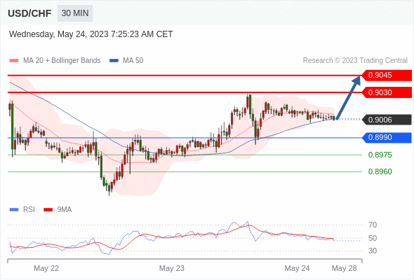 在 0.8990 之上,看涨,目标价位为 0.9030 ,然后为 0.9045 。
