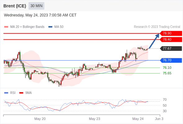 在 76.70 之上,看涨,目标价位为 78.40 ,然后为 78.90 。