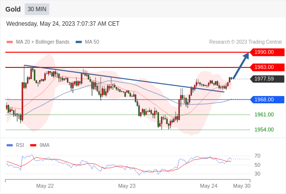 在 1968.00 之上,看涨,目标价位为 1983.00 ,然后为 1990.00 。