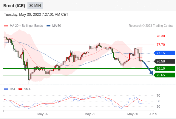 布伦特原油 (ICE)? (Q3)? 当日内: 目标位为75.65。