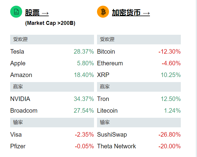 查看我们对最受欢迎的外汇对、股票、指数、商品和加密货币在过去一个月的表现,以及最大的赢家和输家概览。