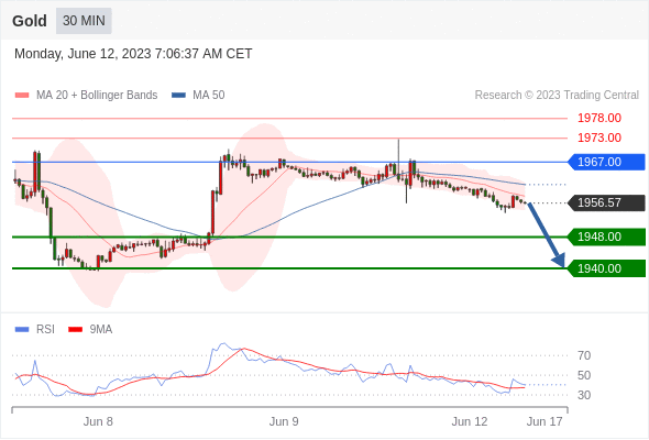 在 1967.00 之下,看跌,目标价位为 1948.00 ,然后为 1940.00 。