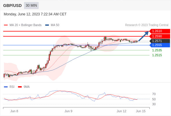 在 1.2555 之上,看涨,目标价位为 1.2590 ,然后为 1.2610 。