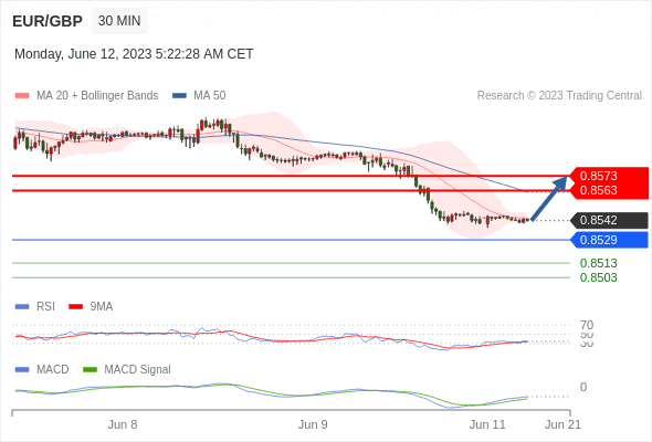 欧元/英镑 当日内: 有上涨的可能,目标价位定在 0.8573 。