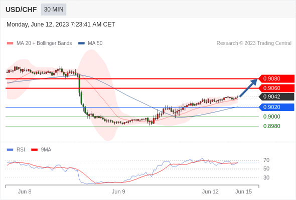在 0.9020 之上,看涨,目标价位为 0.9060 ,然后为 0.9080 。
