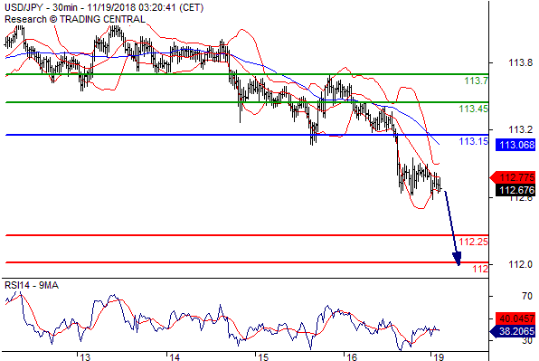 交易策略: 在 113.15之下,看跌,目标价位为 112.25,然后为 112.00。
