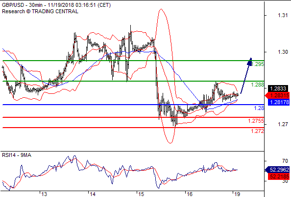 交易策略:在 1.2800之上,看涨,目标价位为 1.2880,然后为1.2950。