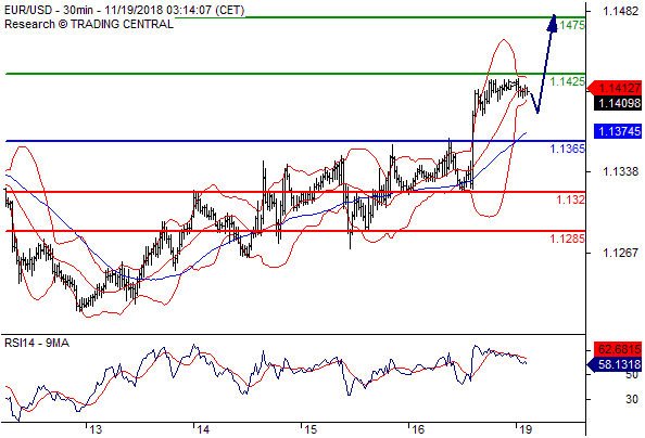 交易策略: 在 1.1365之上,看涨,目标价位为 1.1425,然后为 1.1475。