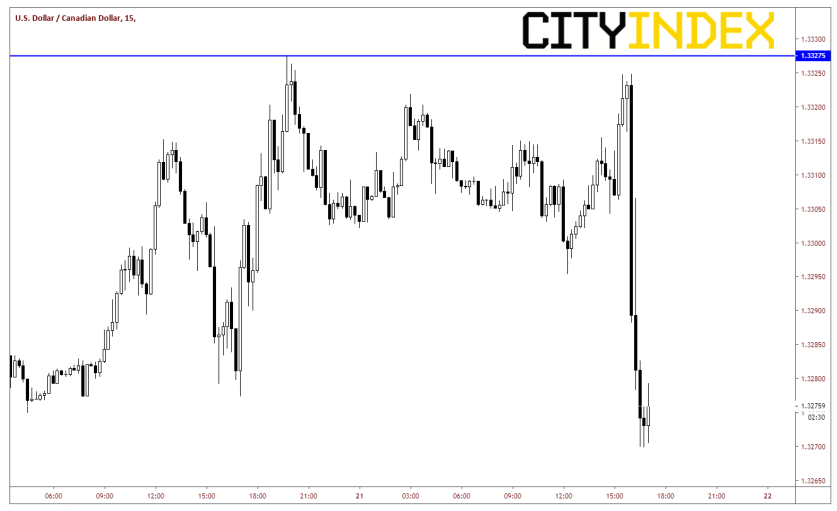 在波洛兹讲话期间,美元/加元承压,自1.3325下跌45个点至1.3270。