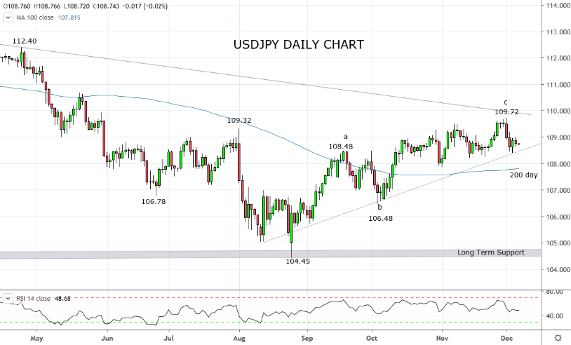 因此,我们倾向于在反攻109.30/50时逢高沽出,更理想的是等待看跌反转K线形成,止损放置在110.25上方。