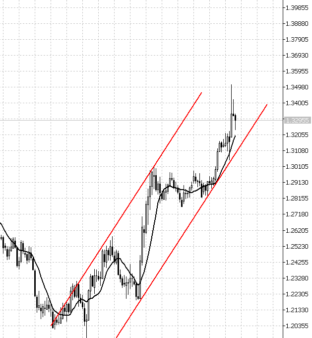 在12月、1月英国政坛上仍极大可能出现脱欧派和留欧派之间的斗争。对于英镑的走势,在大选前和大选中,由于保守党具有较大优势,英镑回暖,走出主升浪上升行情。随着大选的落幕,如果英国真如期出现脱欧、留欧两派的斗争,则英镑的上升可能暂停,进入到拉升后的筑顶阶。在图表上重点关注下图的上升通道,如果该上升通道结束,则在技术上将形成上升趋势结束的技术形态。