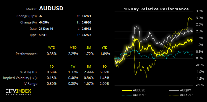 不要忘了基本面。澳洲联储2月是否降息仍无定论。一组强于预期的就业数据将澳洲联储降息25个基点的几率从60%推降至45%。但新一轮就业数据与CPI(还有许多其它数据)将在1月才揭晓,而这些数据可能更有力量左右澳洲联储降息或按兵不动。简言之,弱就业与CPI可能迅速吞噬近期涨幅,而强读数可望推高澳元。