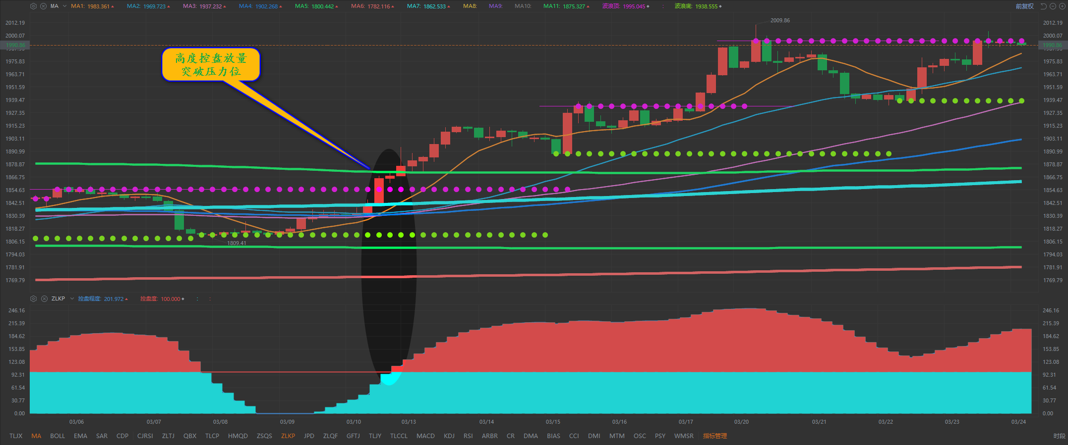 通过对黄金4小时图解析得知,行情之所以从1809附近启动上涨我们从下方的附图可以清楚的看到,从开始控盘和到高度控盘行情一路震荡上行到达上方最近2009附近,虽然前两天出现了调整在下方1934附近出现止跌反弹,目前再次回到1990一线,整体依然是处于高度控盘状态说明昨天行情将会继续震荡上行,虽然上方有 一些阻力,但是均线系统已经是西湖与多头排列状态下方的均线都是支撑,在操作上我们继续重点逢低做多思路不变,具体建议盘中通知