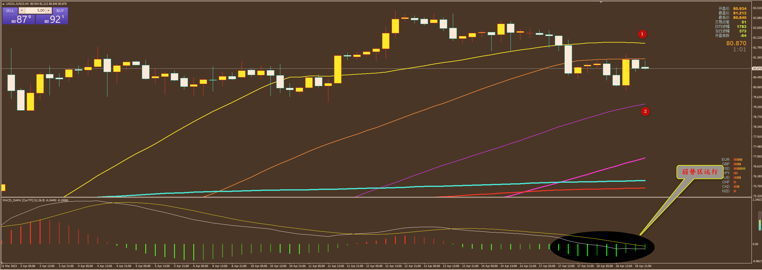 通过对原油4小时图解析得知,昨日行情继续弱势盘整受交割期影响盘中上下震动比较厉害到达上方均线压力位受阻回落,从下方的MACD也可以清楚的看到从高位空头动能柱一直是处于放大的动作盘中反弹一直呈现无力的状态从短期的走势来看依然是处于下跌走势大方向上涨不变,短期下方重点关注2号均线的支撑,以及上方1号均线的压制,在操作上我们继续高空低多思路,具体建议如下: