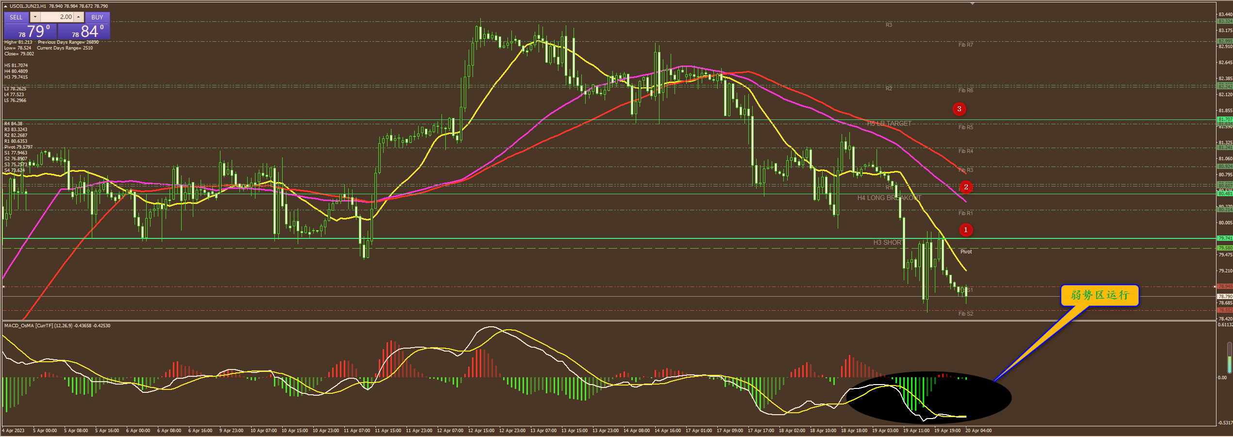 原油79.70和80.70分别做空,止损各70点,止盈各200点。