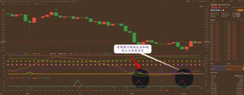 通过对黄金小时图解析得知,早盘在研报中就已经告知小机构和绝地反击信号,目前中午已经再次提示绝地反击信号和超级主力抄底信号,说明行情在主力将要反弹一波,短期上方我们重点关注1927和1938的压力即可,在以往很少有连续出现超级主力抄底信号,短期反弹意愿非常的强烈,在操作上我们逢低做多即可
