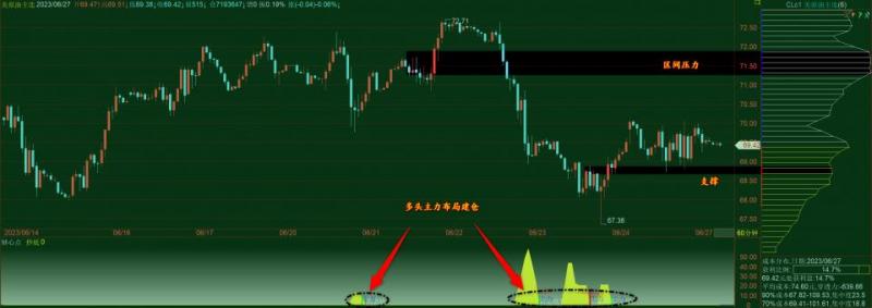 通过对原油小时图解析得知,昨日行情如期在上方小幅震荡调整在下方68.70一线得到支撑反弹上涨继续回归整理区间,我们从下方的幅图可以清楚地看到自从多头主力在下方的底部阶段出现了建仓布局信号都出现一波不错的反弹,目前短期虽然反弹的力道不足但是在下方多次得到支撑说明行情将会继续震荡上行,短期我们重点关注上方71.30-71.80的区间压力即可,短期在操作上我们继续高空低多思路,具体建议如下: