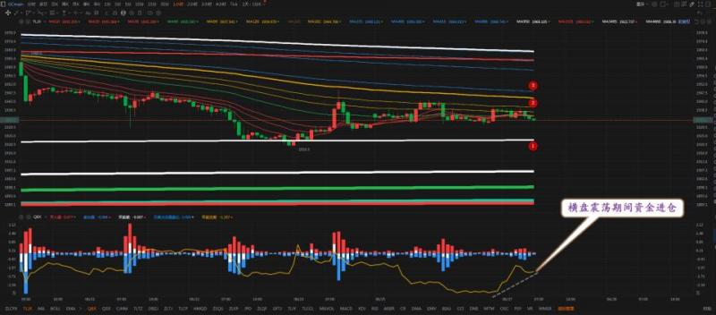 通过对黄金小时图解析得知,黄金早盘15分钟级别出现了底部信号上午反弹了一波虽然空间不大但足可以说明今日早盘期间确实是有一部分主力抄底介入了,周期级别比较小空间相对而言也是比较小的短期下方1号均线依然是重要均线支撑位,短期上方23号均线依然是压力短期,我们从下方的附图中也可以行情在横盘期间有资金进仓,非常有可能继续向上反弹,上方的压力位依然是重点,在操作上我们继续高空低多思路,具体建议盘中通知